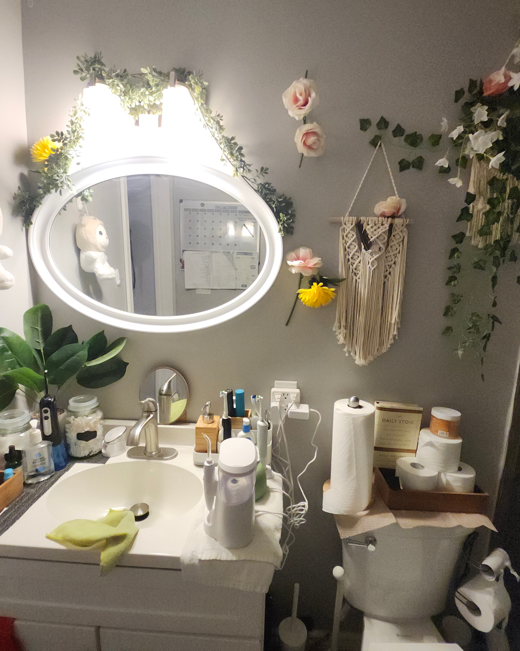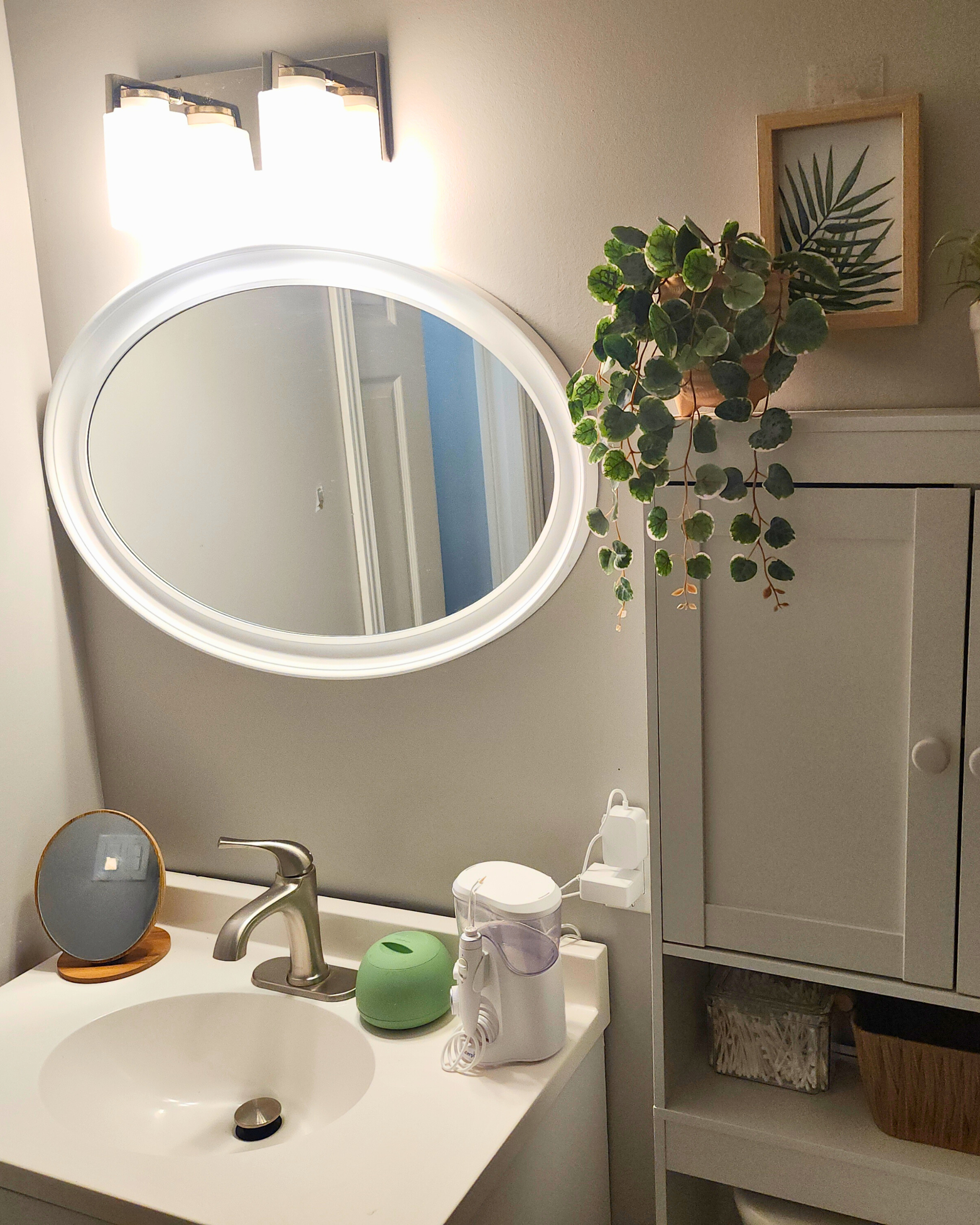 This bathroom was decluttered and reworked with added storage to create a more functional and visually calm space.