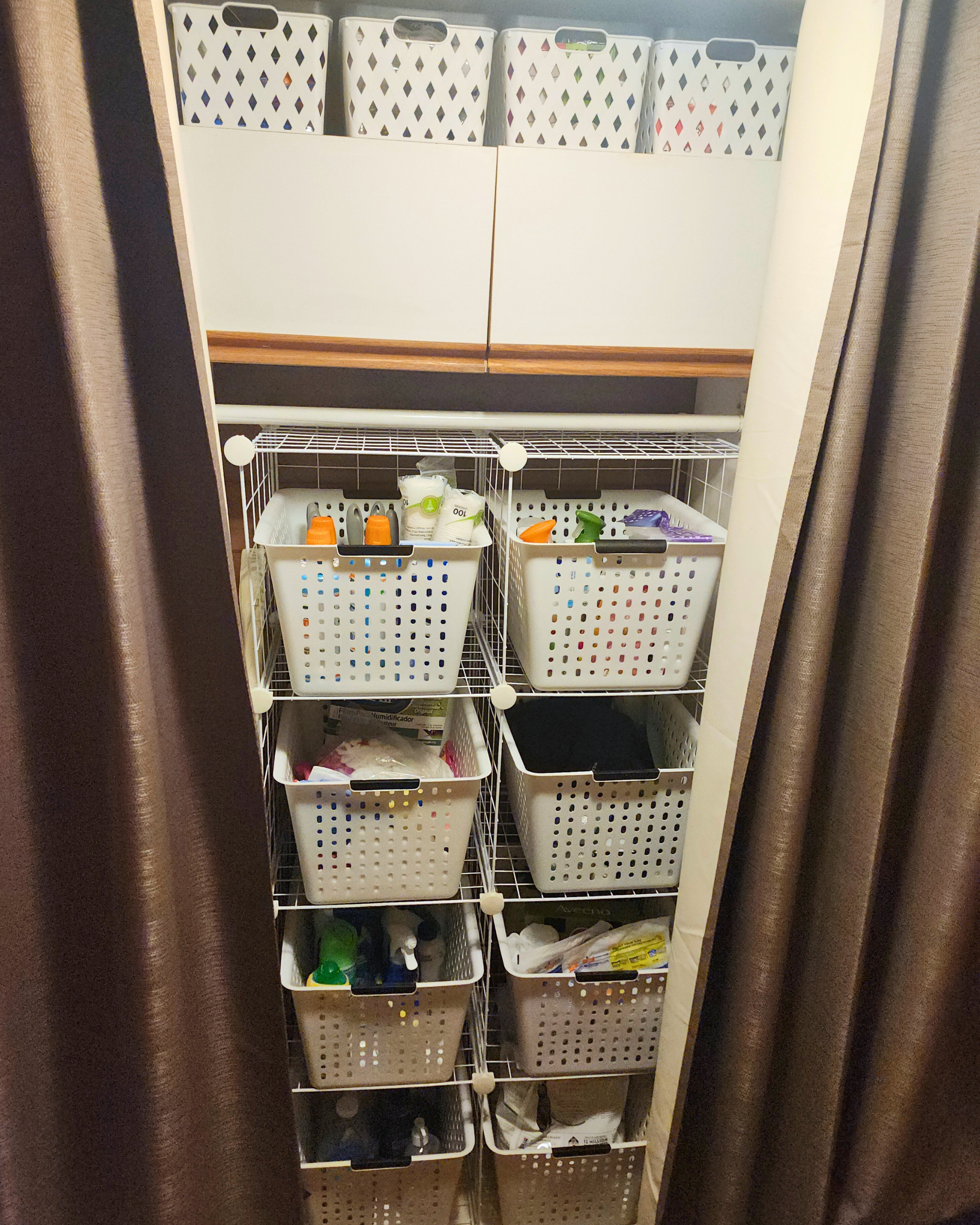 This home utility closet was organized to create simple, functional systems for cleaning supplies, refillable and everyday